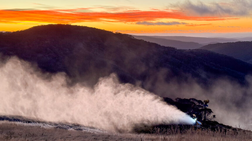 “The pipeline install went well and everything is now connected” said Jesse Ruming, Hotham Snowmaking and Grooming Manager. “We got a really good morning here with cold temperatures and really favourable snowmaking conditions. It’s great to test the guns in lead in to the season so we’re ready to make snow at every opportunity as we get closer to the scheduled season opening.”