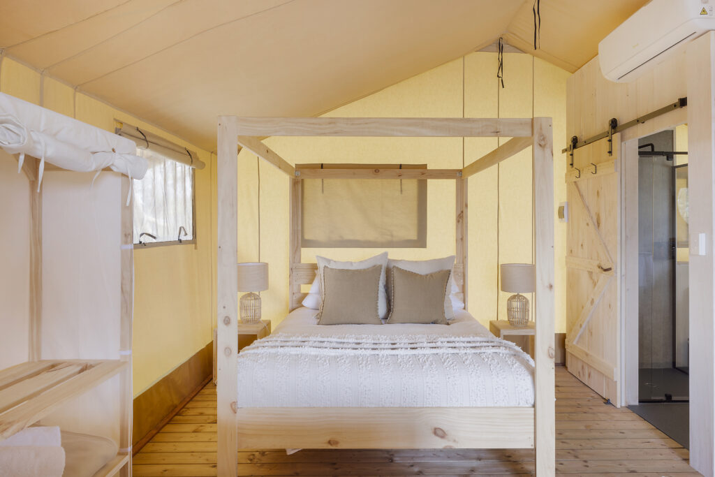 “While many of our guests love pitching a tent on grass, others love the mod cons of camping and these glamping tents give the feel of camping, because they are made of canvas, but have a modern bathroom and well-equipped kitchenette with all the bells and whistles, which makes camping easy,” Mr Baker said.
