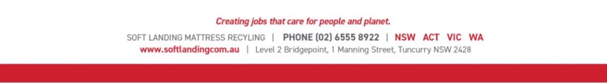 Soft Landing is a national social enterprise that collects and recycles mattresses to keep waste out of landfill and create jobs for people experiencing barriers to work. For every 23 mattresses that we collect and recycle each day, we create a job for someone who really needs one. www.softlanding.com.au