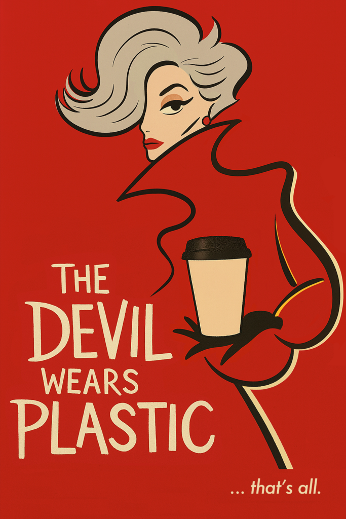 The lead poster, The Devil Wears Plastic, is a striking reinterpretation of fashion’s elite. She’s glamorous. She’s powerful. She’s holding a fake ‘eco’ cup, the kind that ends up in landfill. But on the other side of Terra Sol’s limited-edition takeaway cup, the message is clear: