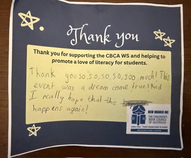 ‘Thank you so, so, so, so, soo much! This event was a dream come true.’ The children of Western Sydney, like many others, have had a unique experience with authors and illustrators. Writers and artists donate their time to events and literary lunches. The regions of the Children’s Book Council are active across Australia. The literary lunches are a highlight for many children as they engage with authors and illustrators, enjoy keynotes, get signed programs, engage with activities to celebrate books.
