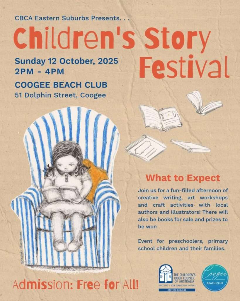 The Children’s Story Festival at Coogee Beach Club on the final weekend of the spring school holidays! The CBCA Eastern Suburbs is delighted to share storytelling, autographs, craft, buy books, talk to authors and illustrators.
