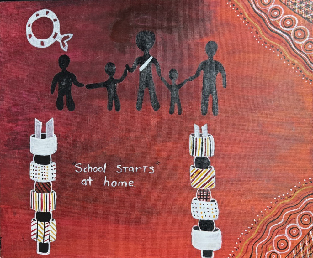 “The use of earthy colours and First Nations symbols may represent a deep connection to country by the artist,” Kevin said.