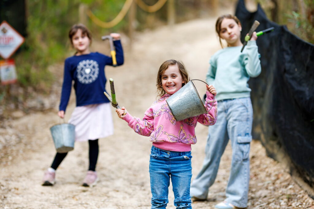 From the moment they step onto site, kids transform into mini construction workers – climbing into the driver’s seat (either solo or with a parent/carer riding shotgun) and learning how to operate the machines. They dig deep, scoop and dump dirt, use a claw to lift and stack tyres, and even master the delicate skill of using a hook to catch rogue ‘crocs’ that keep things interesting.