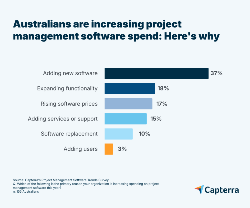 - AI functionality is the primary driver for PM software purchases in Australia, with 60% of project managers citing it as their main reason for recent investments.