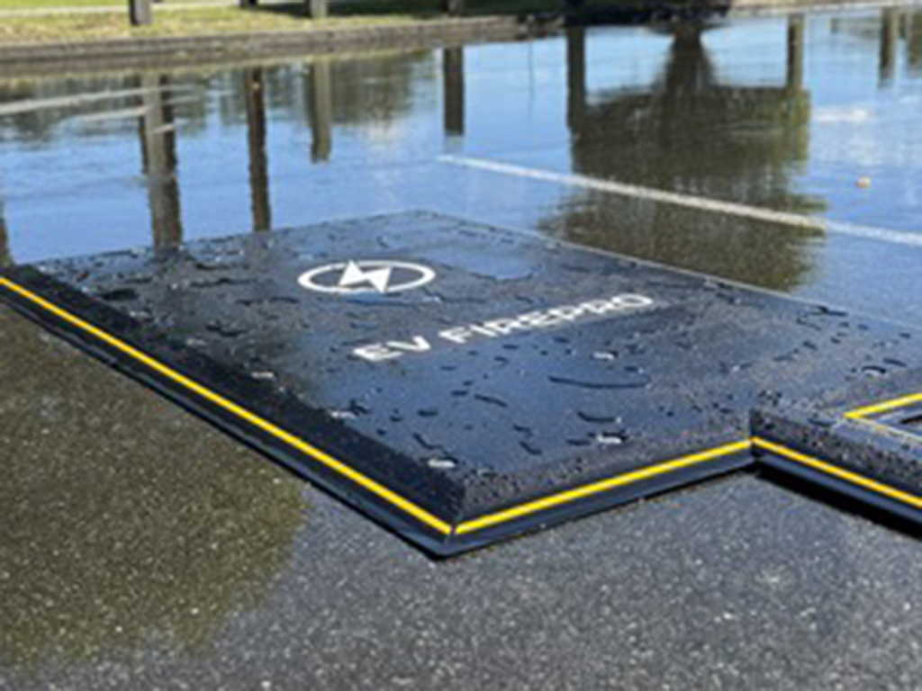 “Traditional ceiling-mounted systems are not designed to target the undercarriage, where EV battery fires originate. EV FirePro’s ground-mounted design delivers targeted spray below and outward, helping to contain heat flux and slow the spread.”
