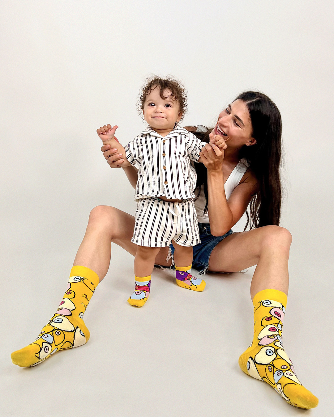 «These socks turn simple, everyday moments into quiet reminders that we’re all connected», says Yael Anders. «Their bold colors and abstract design celebrate the power of motherhood and make the invisible care of moms visible, strong, and worth celebrating.»