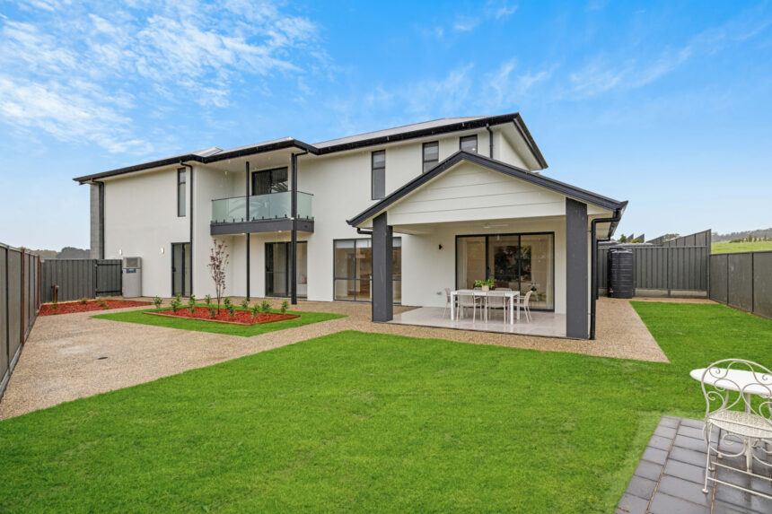 The home features an entertainer’s kitchen, open-plan living area, guest bedroom with ensuite, luxurious master suite with walk-in robe and ensuite, and beautifully landscaped outdoor spaces — all crafted with attention to detail and enduring quality.