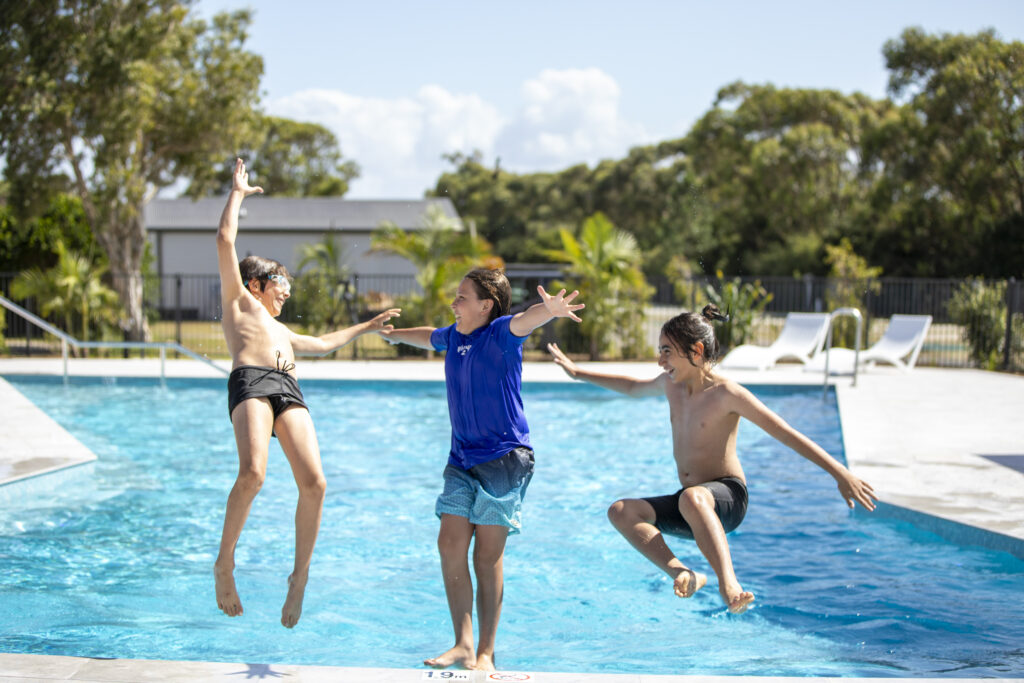 The new accommodation available for summer bookings is: four glamping tents at Hawks Nest, where the recently installed heated pool is a drawcard for families, and four standard cabins in Scotts Head, ready for bookings. Coming online in mid-December are five tiny homes in Lennox Head, two tiny homes in Byron Bay and one tiny home accommodating four people at Scotts Head.