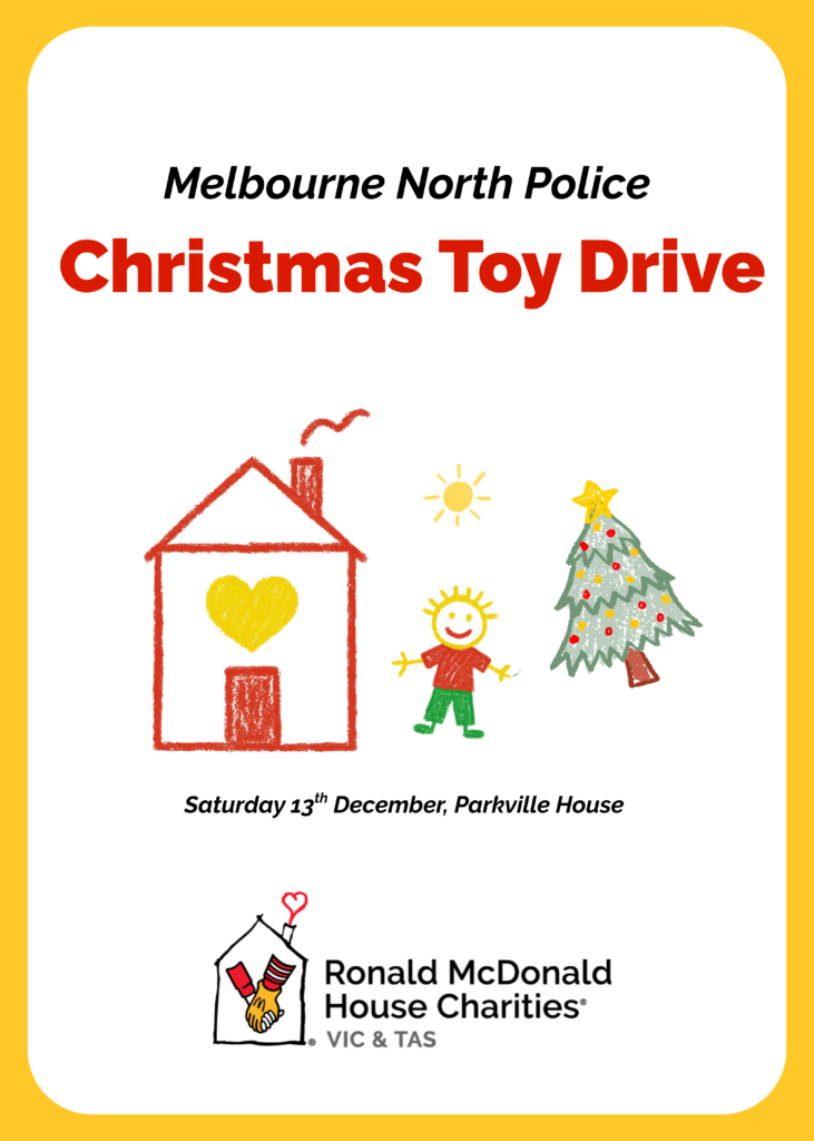 Melbourne North Police to host toy drive for Ronald McDonald House Parkville families this Saturday