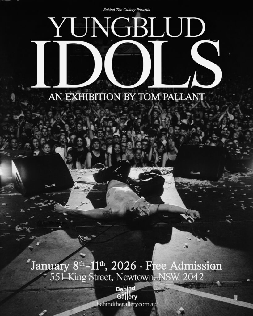 Sydney, Australia — Thursday 4th December 2025— Behind The Gallery is proud to announce the Australian debut of ‘YUNGBLUD: IDOLS’ an exclusive photography exhibition by acclaimed British photographer Tom Pallant, showcasing an intimate and electrifying visual narrative of global rock sensation over the last 18 months at 551 King Street, Newtown 2011 from the 8th-11th January 2026.