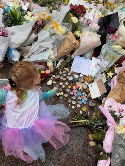 At the memorial service at Bondi Beach NSW Premier Chris Mimms’ said “The thousands who jumped on a surfboard last Friday and paddled past the breakers to show solidarity to this community. The hundreds of first responders, including the police, the paramedics, Surf Life Savers who ran straight into danger to protect our community. The 40,000 people who've given blood as an act of public service, the flowers at the Pavilion, the red and yellow Surf Life Saving army. The candles, the tears – all acts large and small …” Susanne’s granddaughter placed a stone at the memorial.