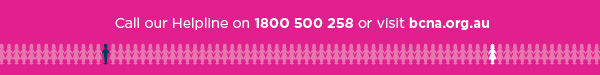 “Because women under 40 fall outside the routine BreastScreen Australia age bracket, this cancer is often only detected in this age group once symptoms appear,” says Vicki Durston, BCNA Director of Policy, Advocacy and Social Services.