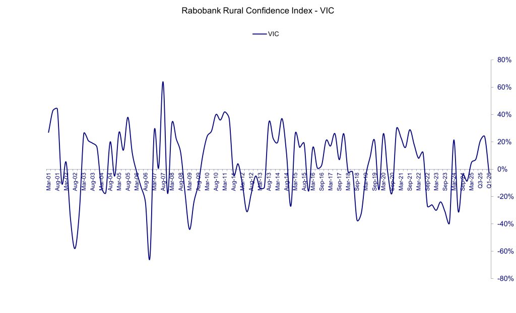 Overall, the Q1 survey found Victorian rural confidence had slipped into negative territory for the first time since late 2024 – with more farmers pessimistic than optimistic about the year ahead.