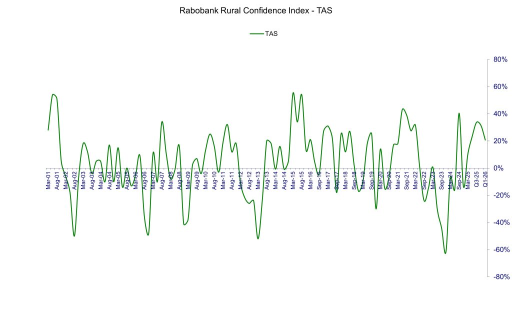 The quarter one Rabobank Rural Confidence Survey had found overall rural sentiment in Tasmania was sitting at a net reading of 21 per cent, down from 31 per cent in the previous quarter.