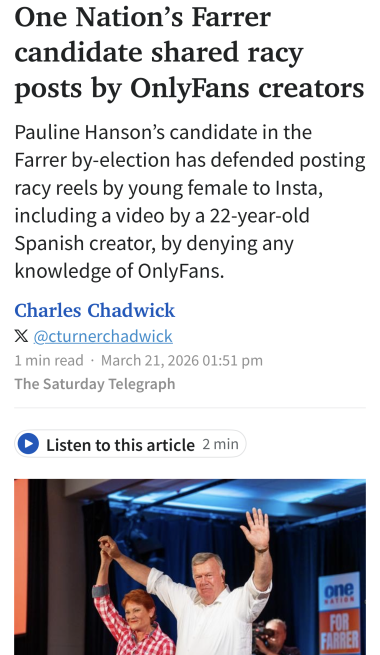 Family First refuses to preference One Nation in Farrer over candidate’s view of women