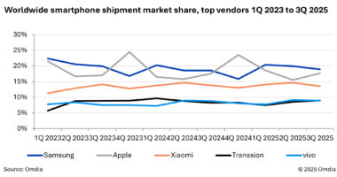 Omdia: Global smartphone market grows 3% in Q3 2025, led by emerging economies