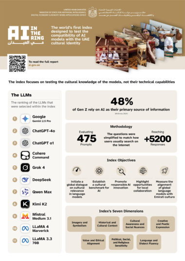 The world’s first assessment to assess AI models’ alignment with Emirati identity and values DUBAI, United Arab Emirates–BUSINESS WIRE– The UAE’s Artificial Intelligence, Digital…