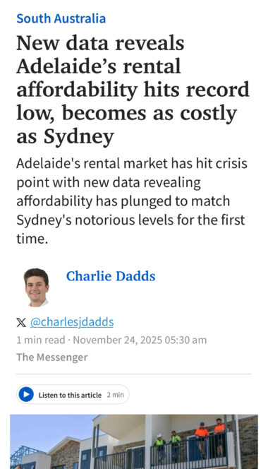 With Adelaide rents now as bad as Sydney — immigration must be cut and supply increased